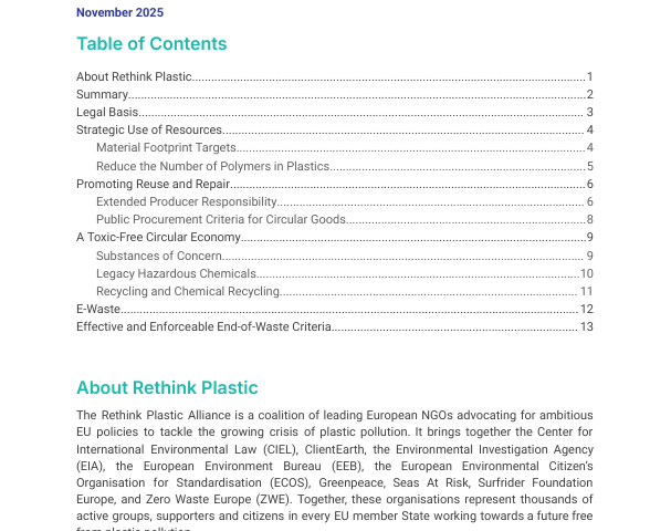 Here you can find the full range of infographics, reports, position papers and videos on plastic pollution by the Rethink Plastic alliance and its member organisations.